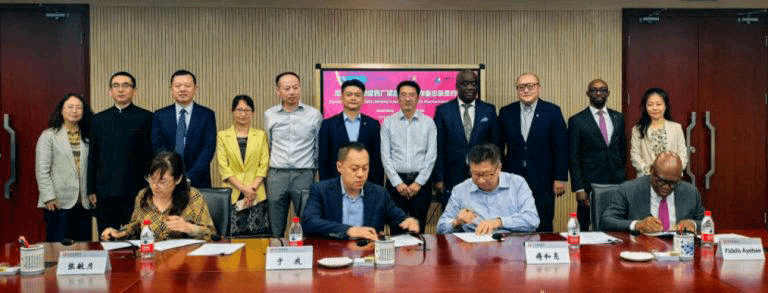 The signing ceremony took place during a visit of a team from Nigeria led by the founder of Fidson, Dr. Fidelis Ayebae, including Dr. Babatunde Ipaye and Mr. Oshoke Ayebae.