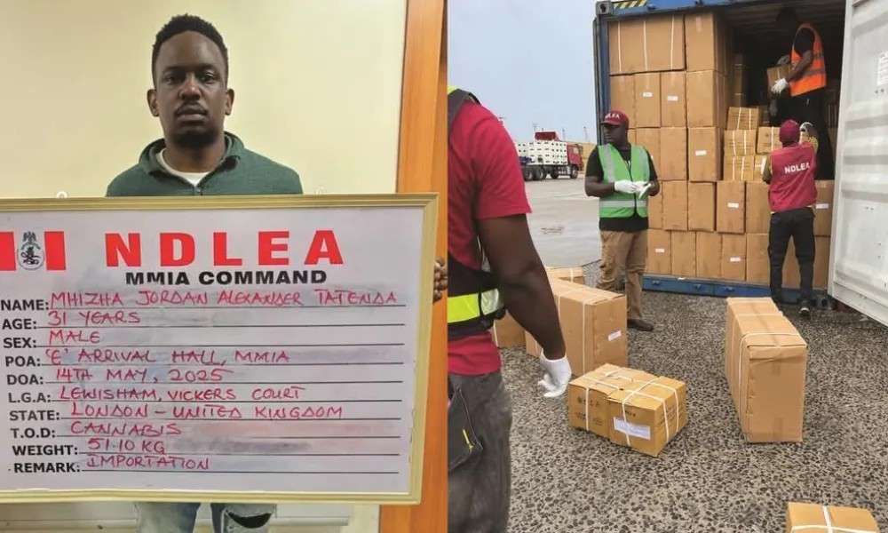 In a related operation, two British nationals—Mhizha Jordan Alexander Tatendra and Ayedipe Andrew Adejuwon—were apprehended at Murtala Muhammed International Airport (MMIA), Lagos, while attempting to smuggle 92 bags of Loud, a potent strain of cannabis, weighing 51.10kg into the country.